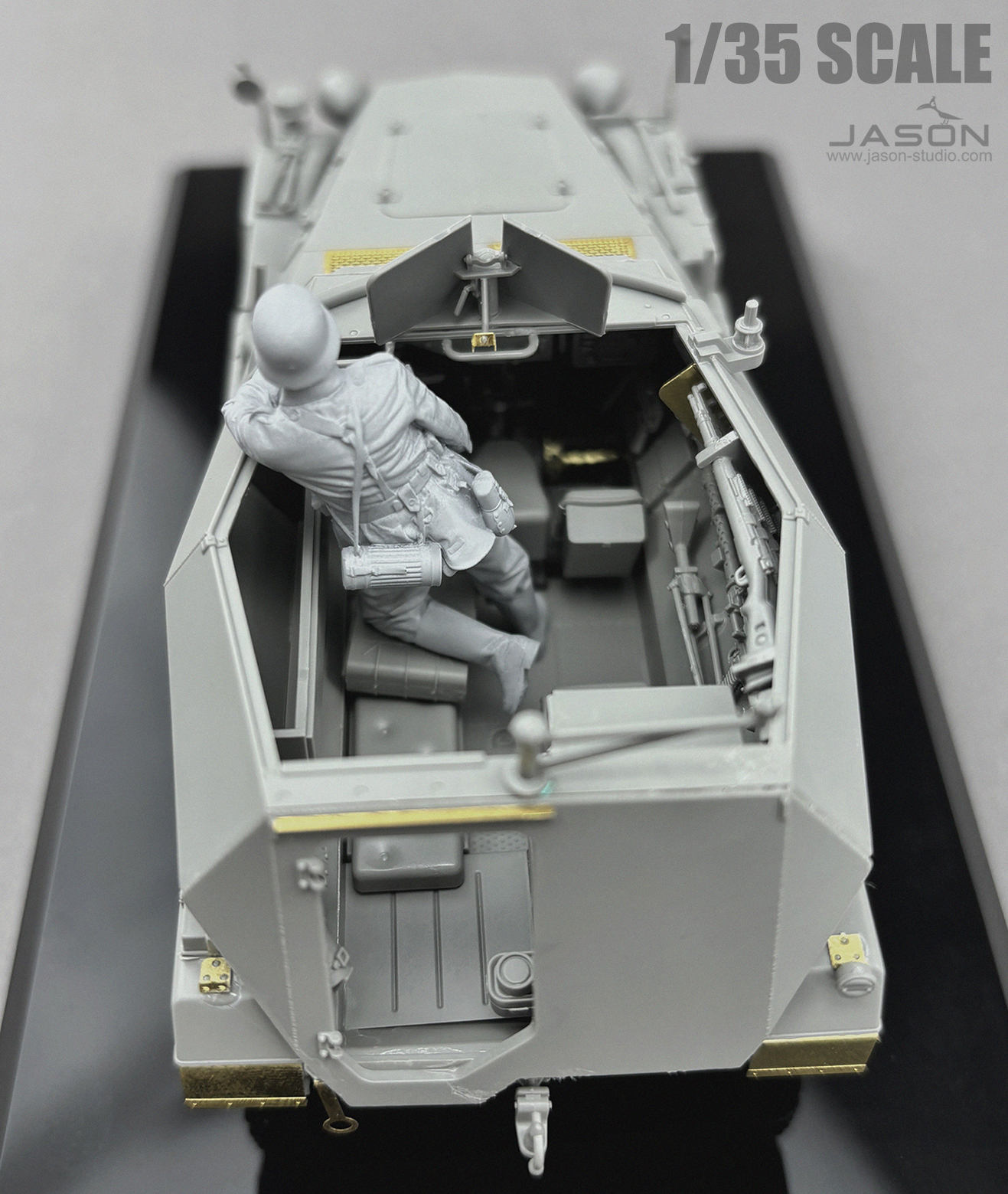 The figure can be fitted to Takom's Sd.Kfz. 250/1 Half Track (No.2184).