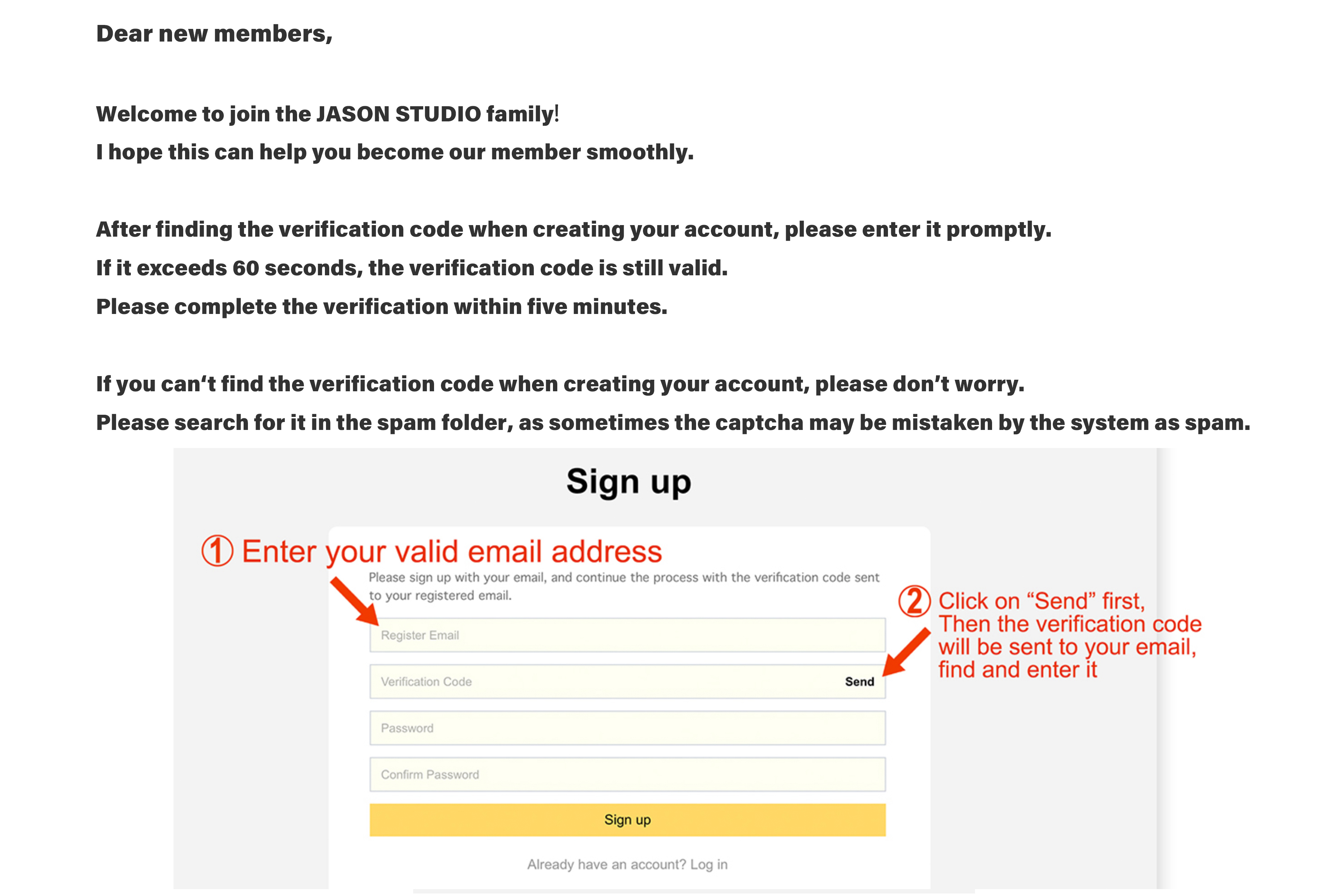 Please sign up with your email, and continue the process with the verification code sent to your registered email.